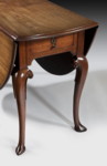 A fine example of an early 18th century drop leaf table with carved cabriole legs with scroll ears, terminating in pointed pad feet with scalloped heels. The arcaded frieze has a single drawer to one end. |